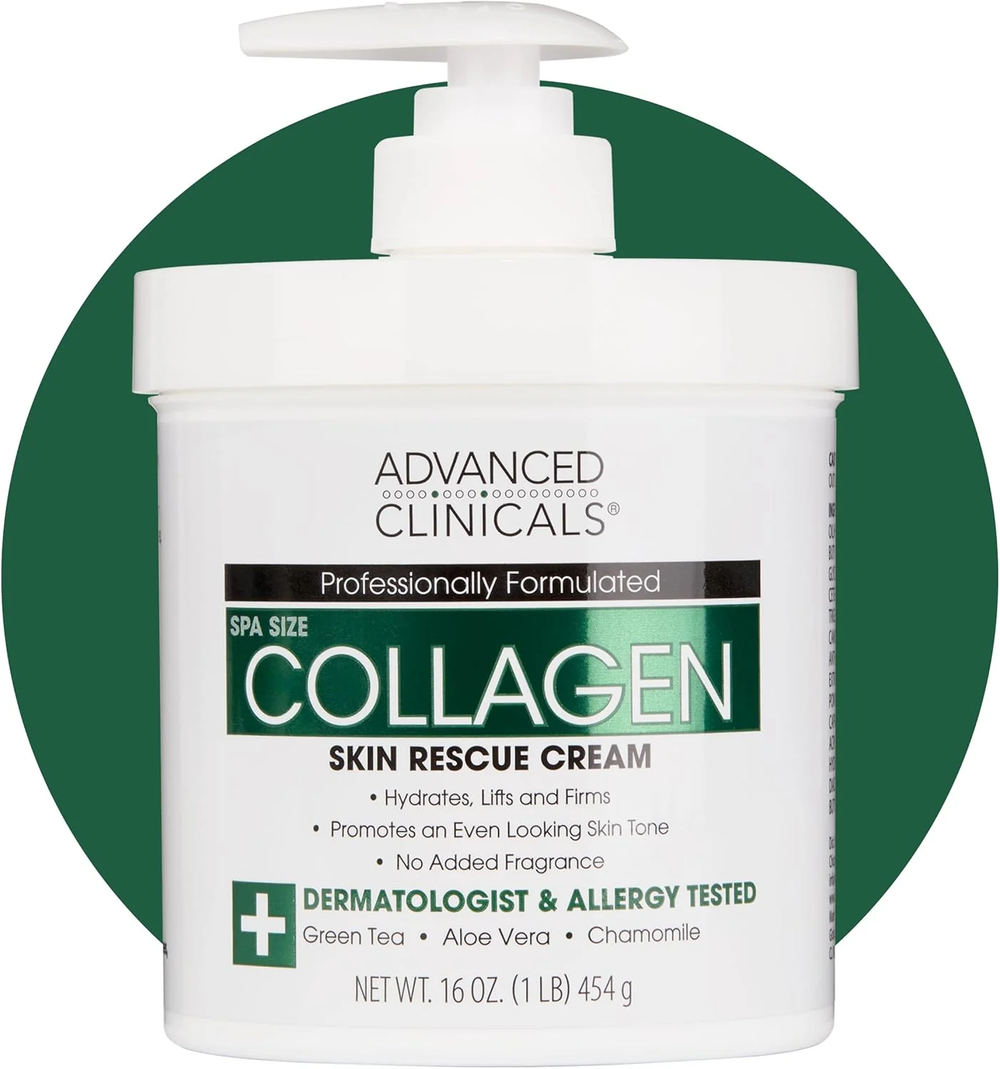 Advanced Clinicals Collagen Skin Rescue Cream is infused with Green Tea, Chamomile, and Vitamin E, moisturizes skin which helps provide a firmer-looking appearance and visibly smooth the skin for a toned appearance. The rich, velvety cream melts into the skin to hydrate and restore softness.
