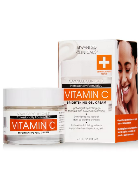 Advanced Clinicals Vitamin C Brightening Gel-Cream is a lightweight, hydrating moisturizer that helps brighten skin. Formulated with vitamin C, it helps reduce dark spots, even skin tone, and promote a youthful glow while providing deep hydration for a smooth, radiant complexion.