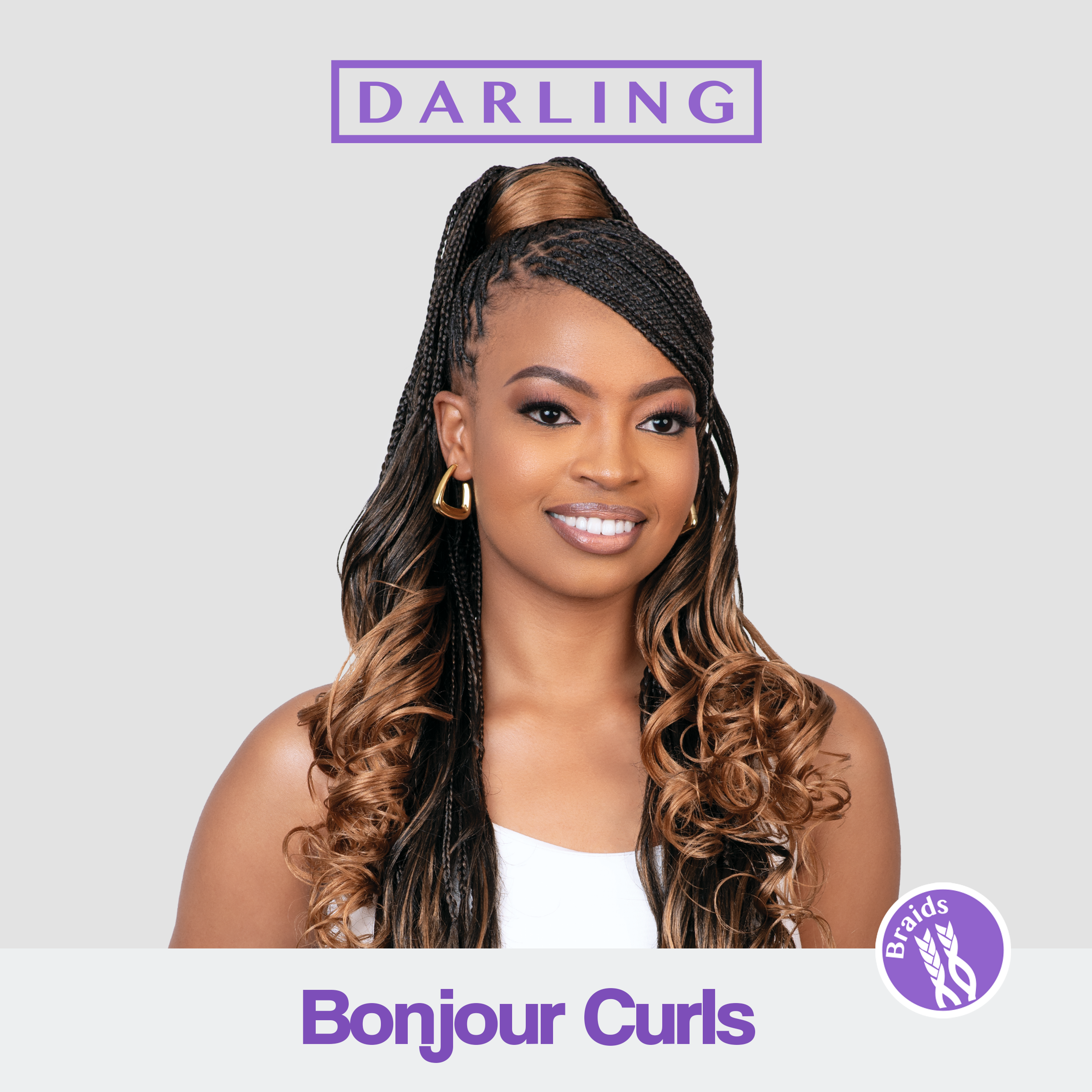 Darling Bonjour Curls Long features soft, defined curls that add volume and bounce for a naturally beautiful look. Lightweight and easy to maintain, these extensions are perfect for achieving a full, curly hairstyle that’s versatile, stylish, and effortlessly elegant.