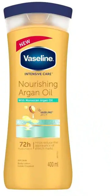 Vaseline Nourishing Argan Oil Body Lotion deeply moisturizes dry skin with rich argan oil. It helps restore skin softness, improve elasticity, and lock in long-lasting hydration for smooth, glowing, and beautifully nourished skin.